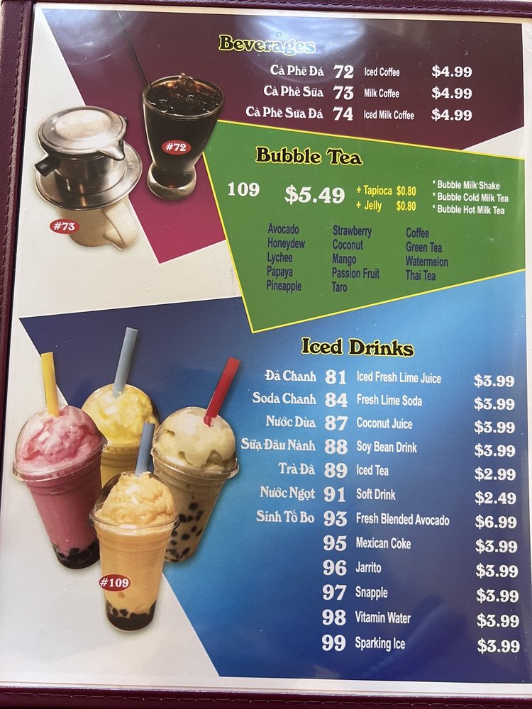 "Pho Tai" offers a diverse menu with a variety of Vietnamese dishes, bubble teas, and extra sauces to enhance your dining experience. Located in Tukwila, WA, this Asian-owned restaurant provides a casual atmosphere with options for vegan and vegetarian customers. Their appetizers like Fried Rolls and Pot Stickers are a must-try, complemented by refreshing bubble teas in flavors like Watermelon and Avocado. With wheelchair accessibility, Wi-Fi, and outdoor seating, "Pho Tai" caters to a wide range of customers, making it a great spot for lunch or dinner with friends and family.